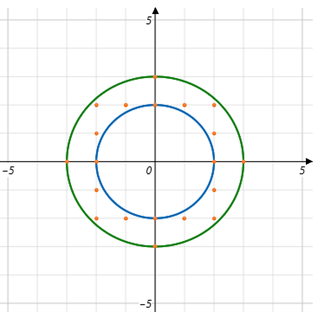 r2보다 작은 모든 점을 일일히 계산하기에는 값의 범위가 너무 큽니다.